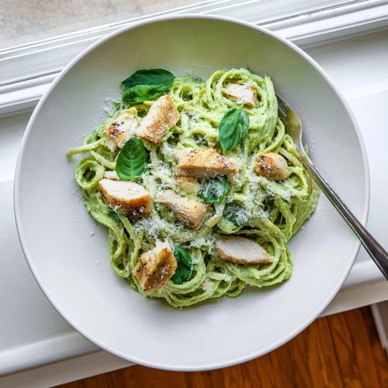 Absolutely. Leftover roasted, baked, or rotisserie chicken works beautifully in this dish. Simply slice or shred the cooked chicken and warm it gently in a pan before tossing with the pasta and sauce. This shortcut reduces total time to about 20 minutes.